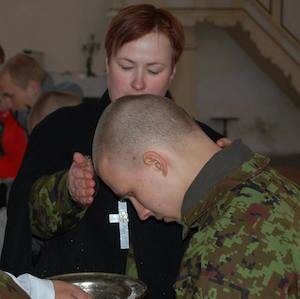 Pühapäeval, 12. aprillil konfirmeeris Kuperjanovi jalaväepataljoni kaplan nooremleitnant Anna-Liisa Vaher (fotol) Rõuge kirikus 10 ajateenijat, ühe tegevväelase ja viimase kihlatu. «Tegemist oli tugevalt motiveeritud rühmaga, kes vabatahtlikult oma napist vabast ajast oli rõõmuga leeritundides,» toonitab kaplan Vaher Eesti Kirikule oma viimase leerirühma kursante tutvustades.