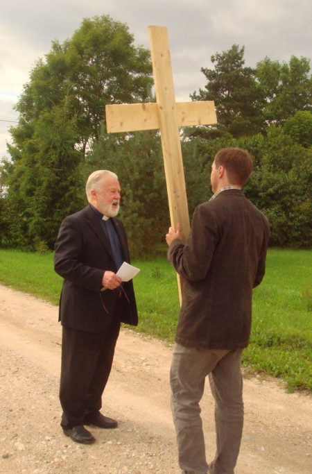 Jõudnud umbes kilomeetri kaugusele kunagisest kloostrist, alustati palveteekonda, ees hööveldamata laudadest massiivne rist. Preester Salo eeslaulmisel lauldi koos kõigi pühakute litaaniat. Edasi liiguti vaikides ja kunagise kloostri õuel loeti meieisa palvet.