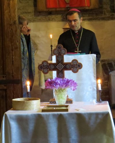 Piiskop Philippe Jourdan (fotol) pöördus kõigi koguduste ja inimeste poole sõnumiga, et palved Ukraina rahu eest on väga oodatud: vajame ja palume teie palveid Ukraina rahu eest.