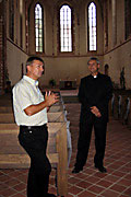 Peaminister Andrus Ansip, endine Tartu linnapea ja sihtasutuse Tartu Jaani Kirik nõukogu esimees, viis külalised kurssi Jaani kiriku omapära ning renoveerimise etappidega.