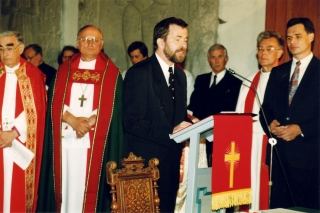 8. septembril 1996. aastal allkirjastati pidulikul jumalateenistusel Tallinna Piiskoplikus Toomkirikus Porvoo leping. Paremal seisavad EELK esindajatena Porvoo-protsessis EELK Konsistooriumi esindajatena osalenud Toomas Paul ning Tiit Pädam, kõneleb Alar Laats. Nemad kandsid ette deklaratsiooni ingliskeelse teksti. Sama leping allkirjastati ka Trondheimis ja Londonis.