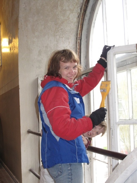 Eeltööna oli akendelt eemaldatud spordisaaliaegsed kiled ja nüüd pesti aknaid, abiks oli tõstuk ja redelid. Kirikut taastava sihtasutuse nõukogu liikmele Imre Taalile jäid silma inimesed, kes olid töö tegemisel hasardis ja heas tujus.