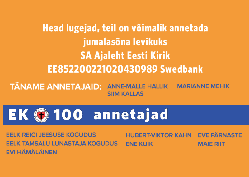 / Autor: Eesti Kirik / Rubriik: Täname, Teated / Number: 13. september 2023 Nr 33/34 /