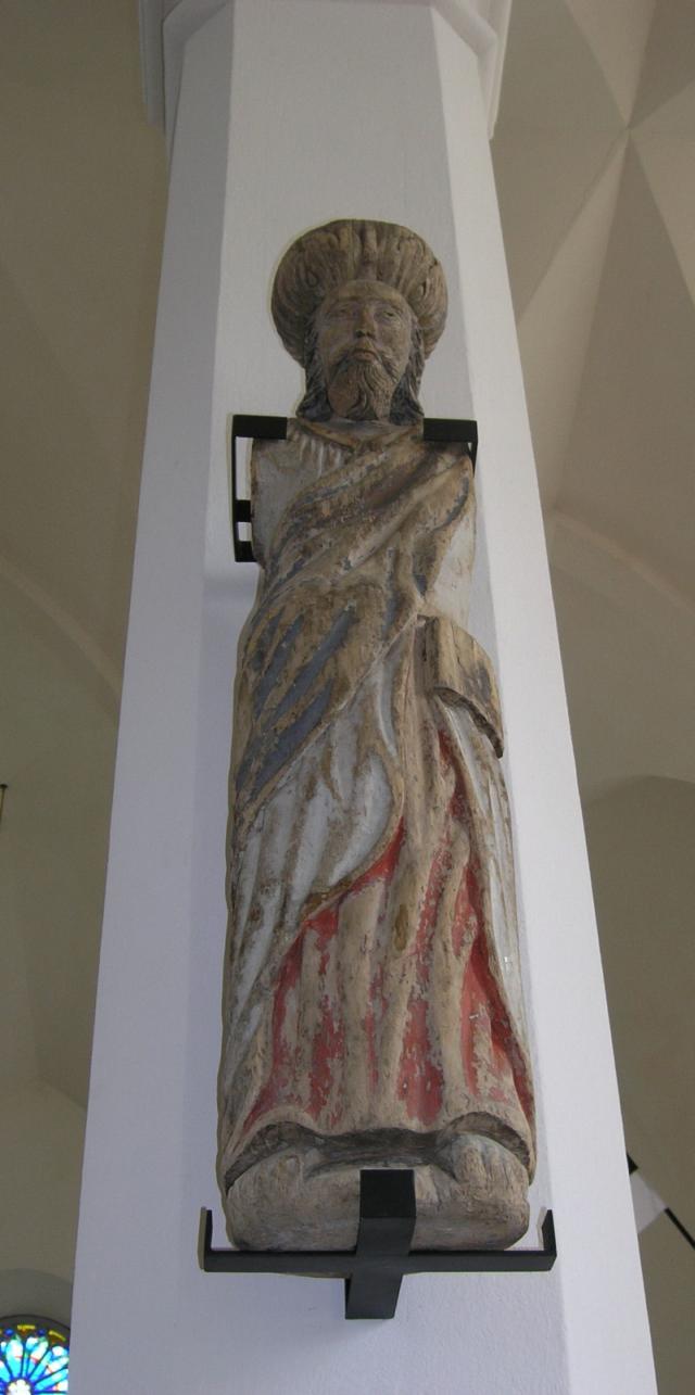 Nimelt viidi 4. mail sinna pärast konserveerimistööde lõppemist tagasi kirikus kunagi eksisteerinud kantsli jalg. Konserveerimistööd tegi KAR-Grupp AS. Kuju seisund oli halb — puit mardikate poolt suures mahus kahjustatud ning skulptuuri pind väga mustunud. Puhastamise käigus ilmusid nähtavale üllatavalt hästi säilinud kunagise polükroomia jäänused figuuri rüül ja näol — punane, valge, sinine, roosa.