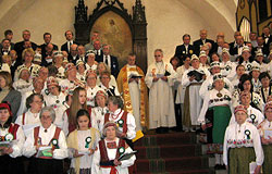 ![]() Jõhvi kiriku seinte vahele mahtus ära terve laulupidu. Jumalasõnaga toetasid pidulisi peapiiskop Andres Põder ja õpetaja Peeter Kaldur. |