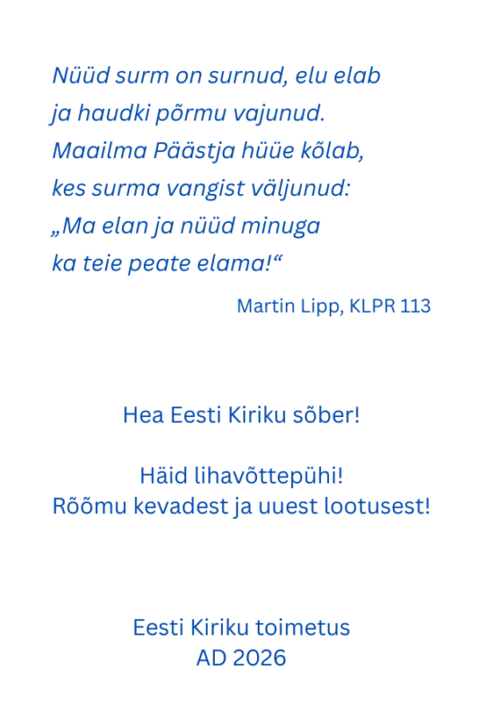 Eesti Kiriku pühadekaart lihavõttepühadeks
