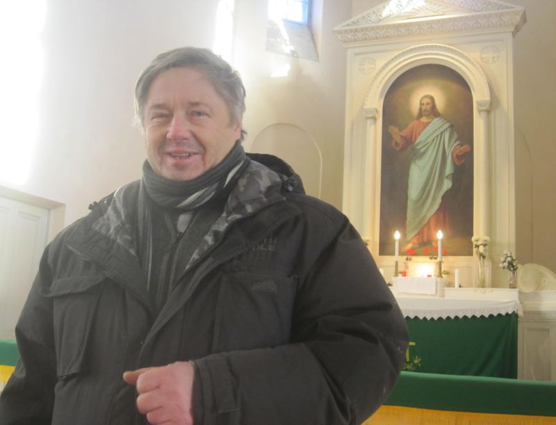 Jõuame kiriku juurde. Kuus aastat tagasi värvis Andres Mäevere kiriku plekist katuse üle – hoone püsib kuivana.