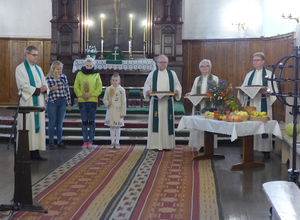 Lõikustänupüha jumalateenistusel teenisid kaasa kolm sõpruskoguduse õpetajat: Seppo Jarva, Seppo Kuosmanen ja Anne Kilponen. Jumalateenistus oli pidulik, laulis koguduse segakoor. Kirikus oli palju rahvast, tunne oli ülev ning pühalik. Inimestel oli võimalik tuua oma tänuande valminud viljade näol ja seda ka tehti.