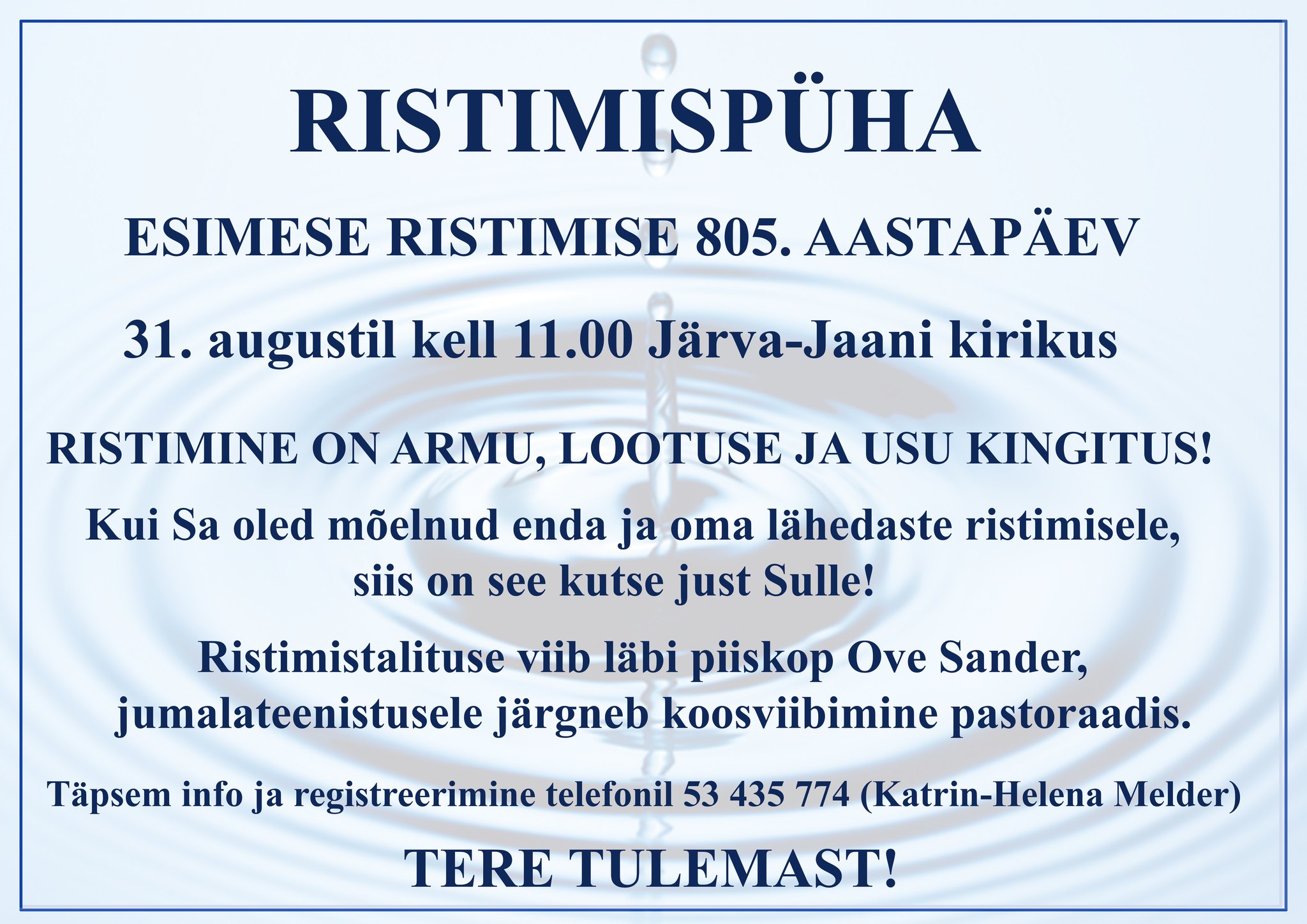 Ristimisest osasaamiseks on aega registreeruda veel 29. augustini telefonil 5343 5774.