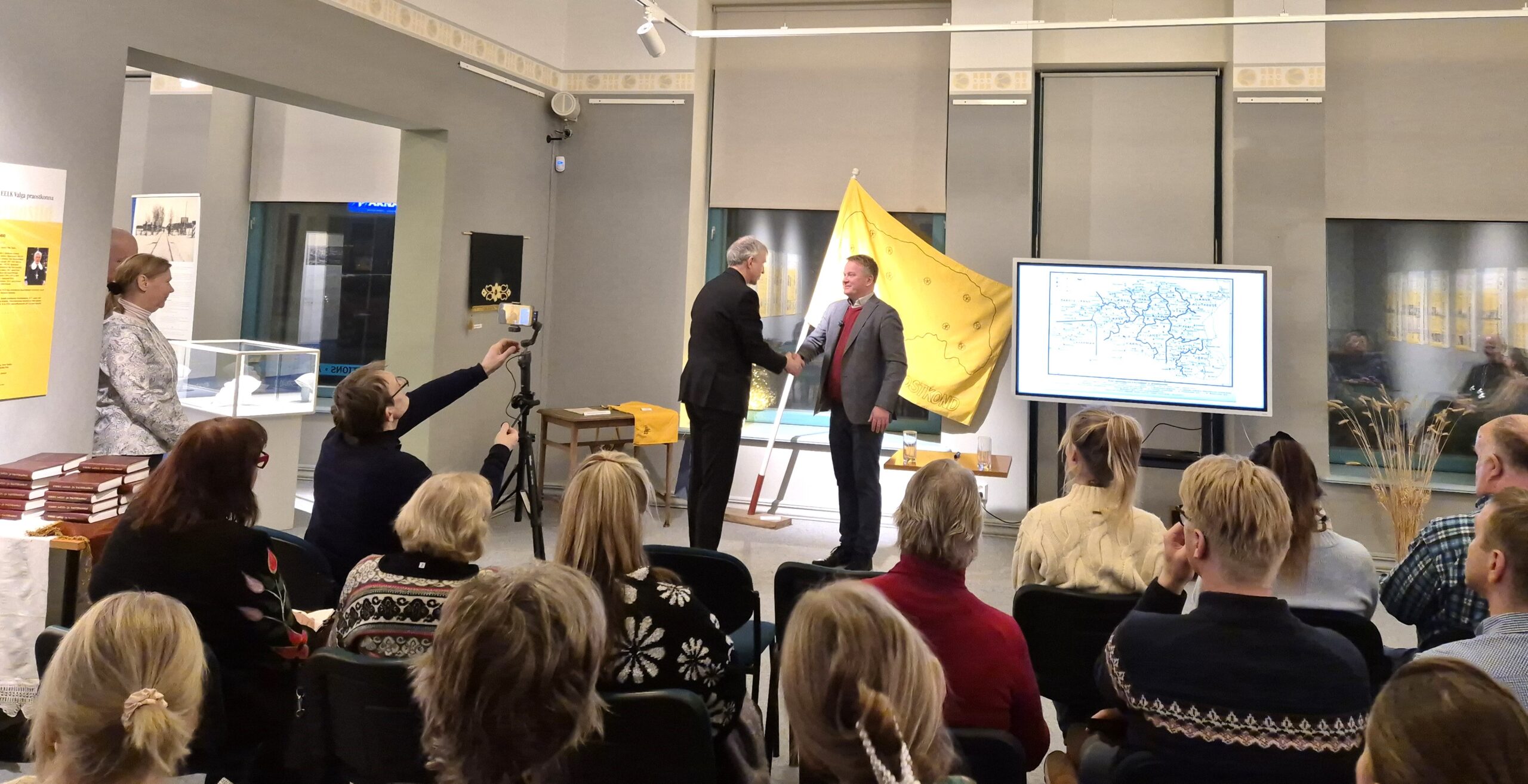 Praost Mart Jaanson tänab professor Priit Rohtmetsa sisuka ettekande eest. 3. veebruaril toimus Valga muuseumis näituse avamine ja konverents „Valga praostkond 100". Foto: Kätlin Liimets