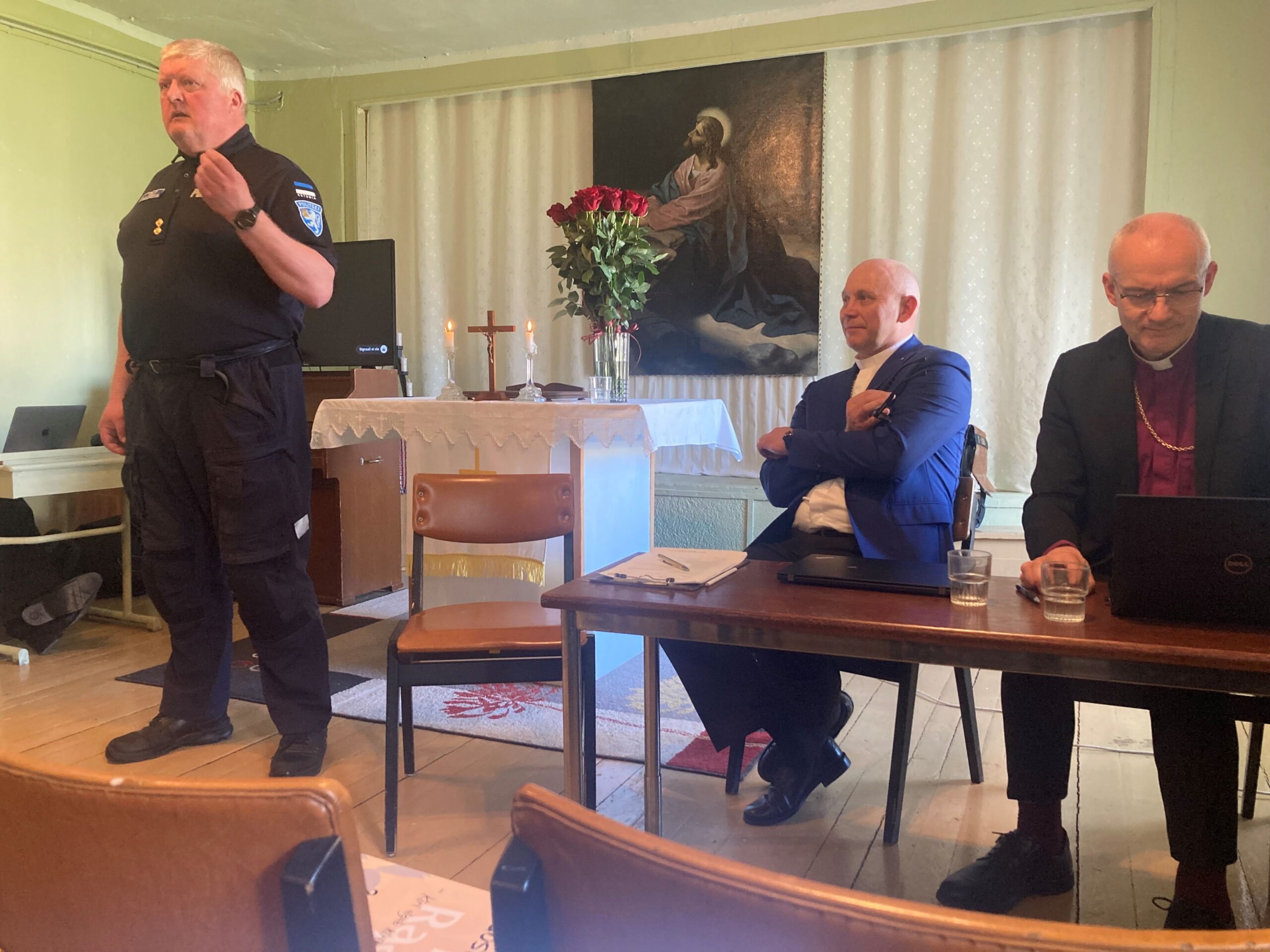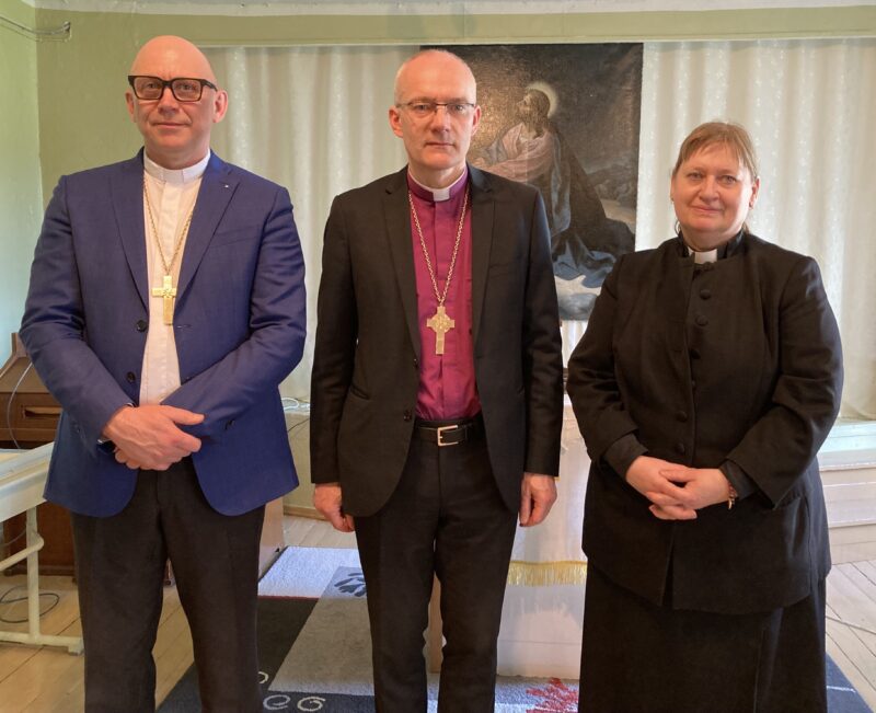 Pärast kordaläinud sinodipäeva: abipraost Küllike Valk, piiskop Anti Toplaan ja praost Kaido Saak. Foto: Liina Raudvassar