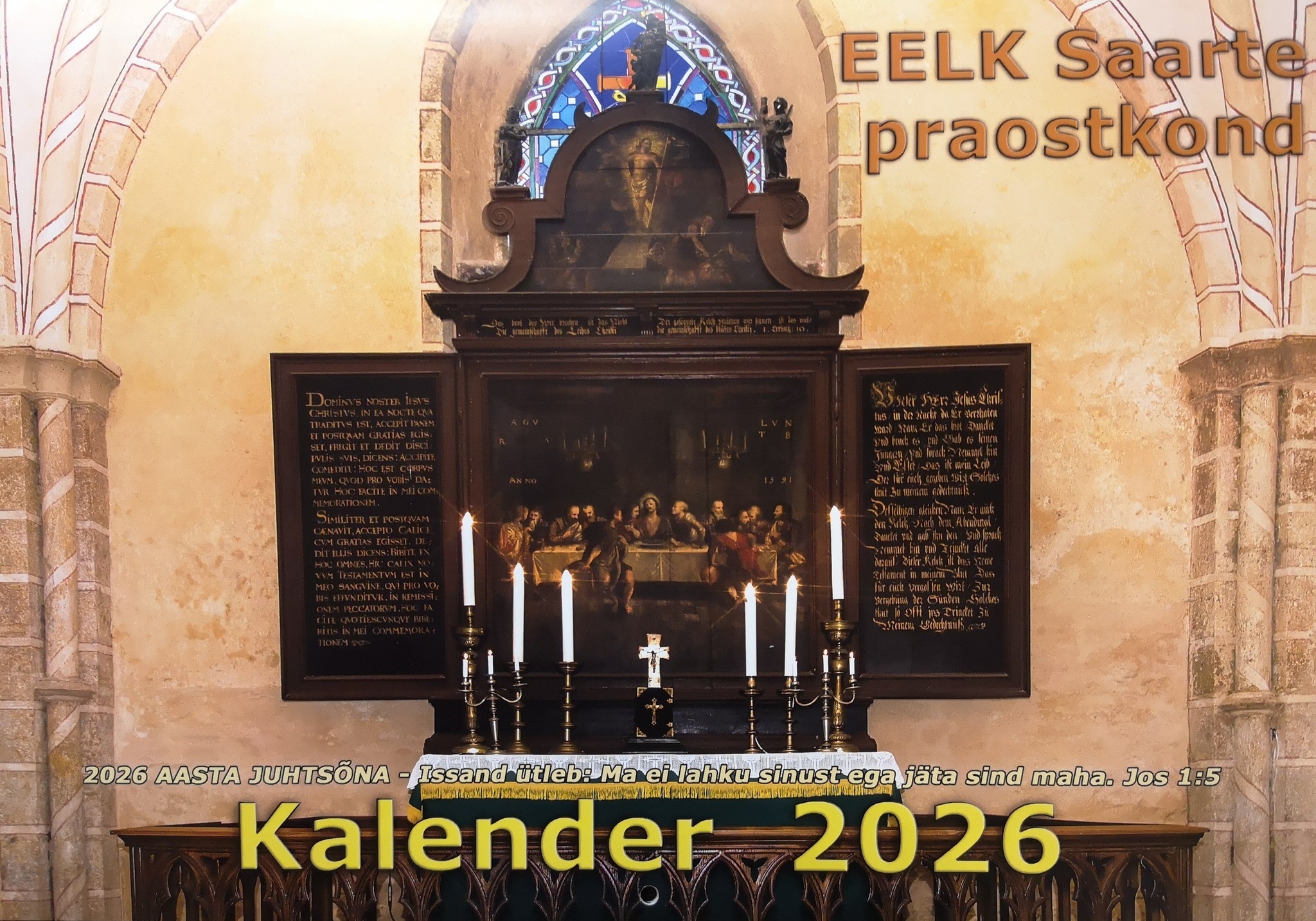 Saarte praostkond on taas välja andnud seinakalendri. Teemaks on praostkonna kirikute altarimaalid. Idee pärineb õp Veiko Vihurilt, kes koos Andi Roostaga on altareid pildistanud ja teinud fotodest valiku. Mõned fotod on õp Endel Apsalonilt ja õp Illimar Toometilt. Piiblisalmid kalendrisse valisid õpetajad Hannes Nelis ja Joel Siim.