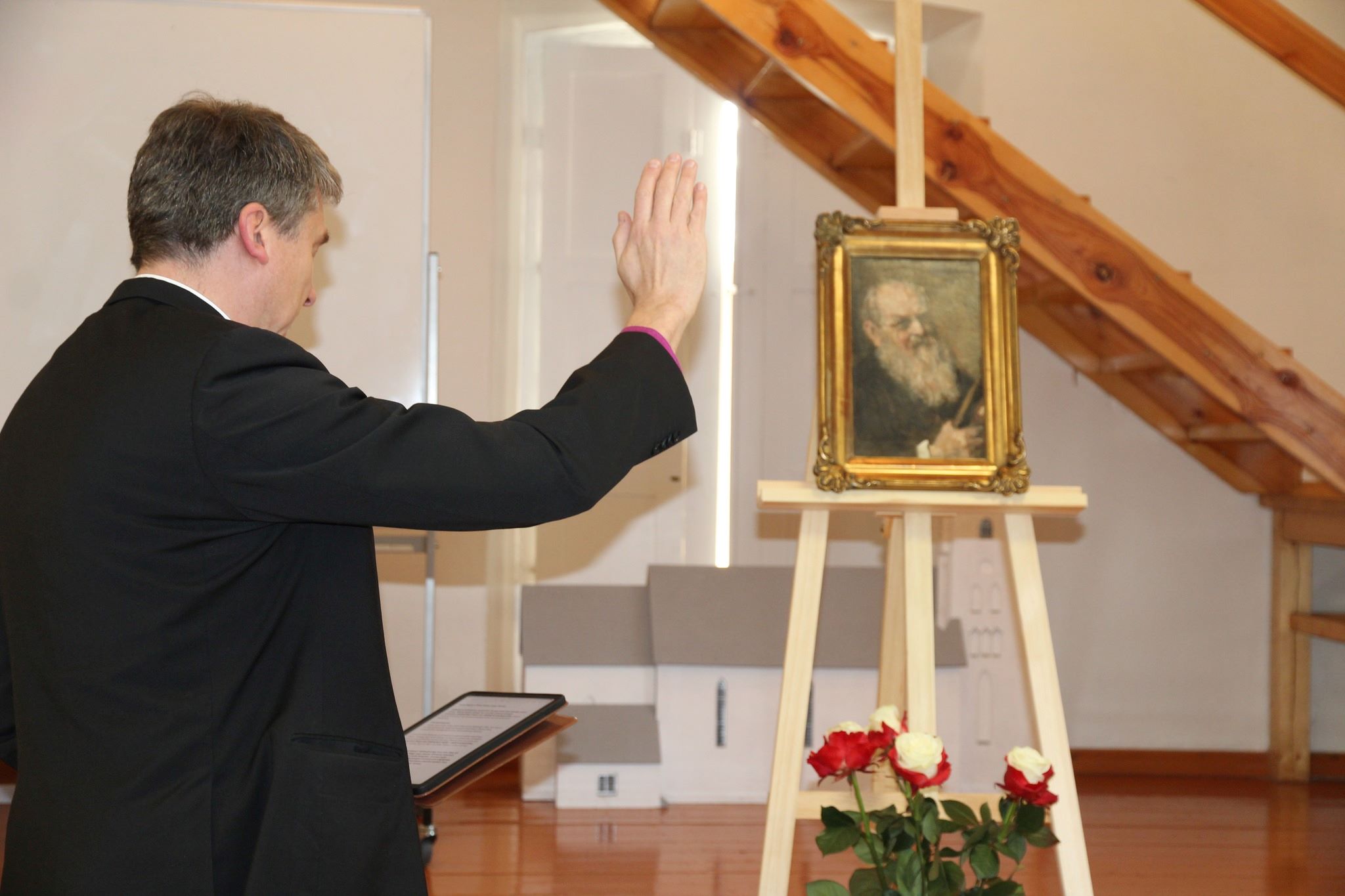 Peapiiskop Urmas Viilma õnnistab Eduard von Gebhardti autoportree. Foto: Järva vald
