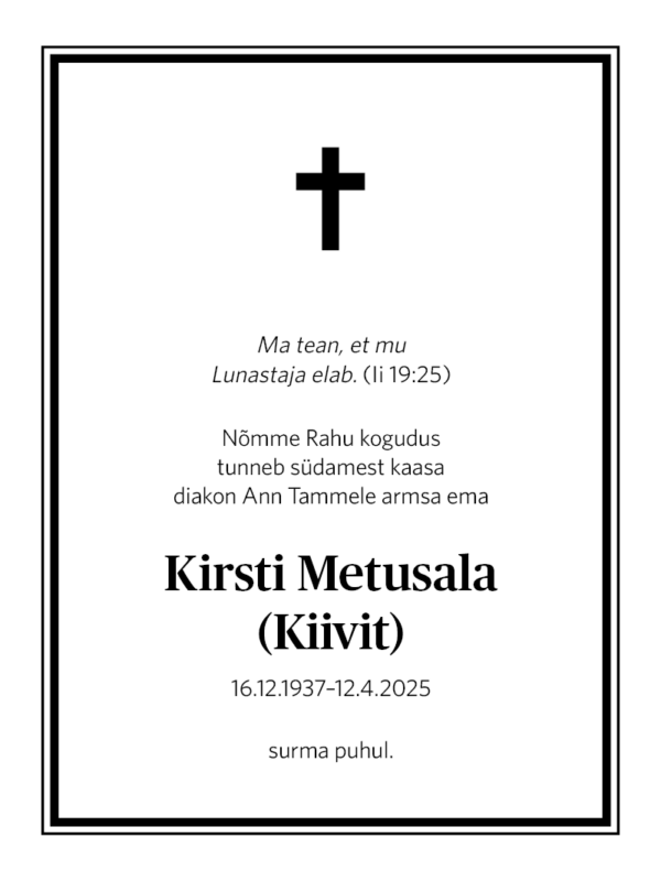 / Autor: Eesti Kirik / Rubriik: Kaastunne, Teated / Number: 30. aprill 2025 Nr 17 digileht /