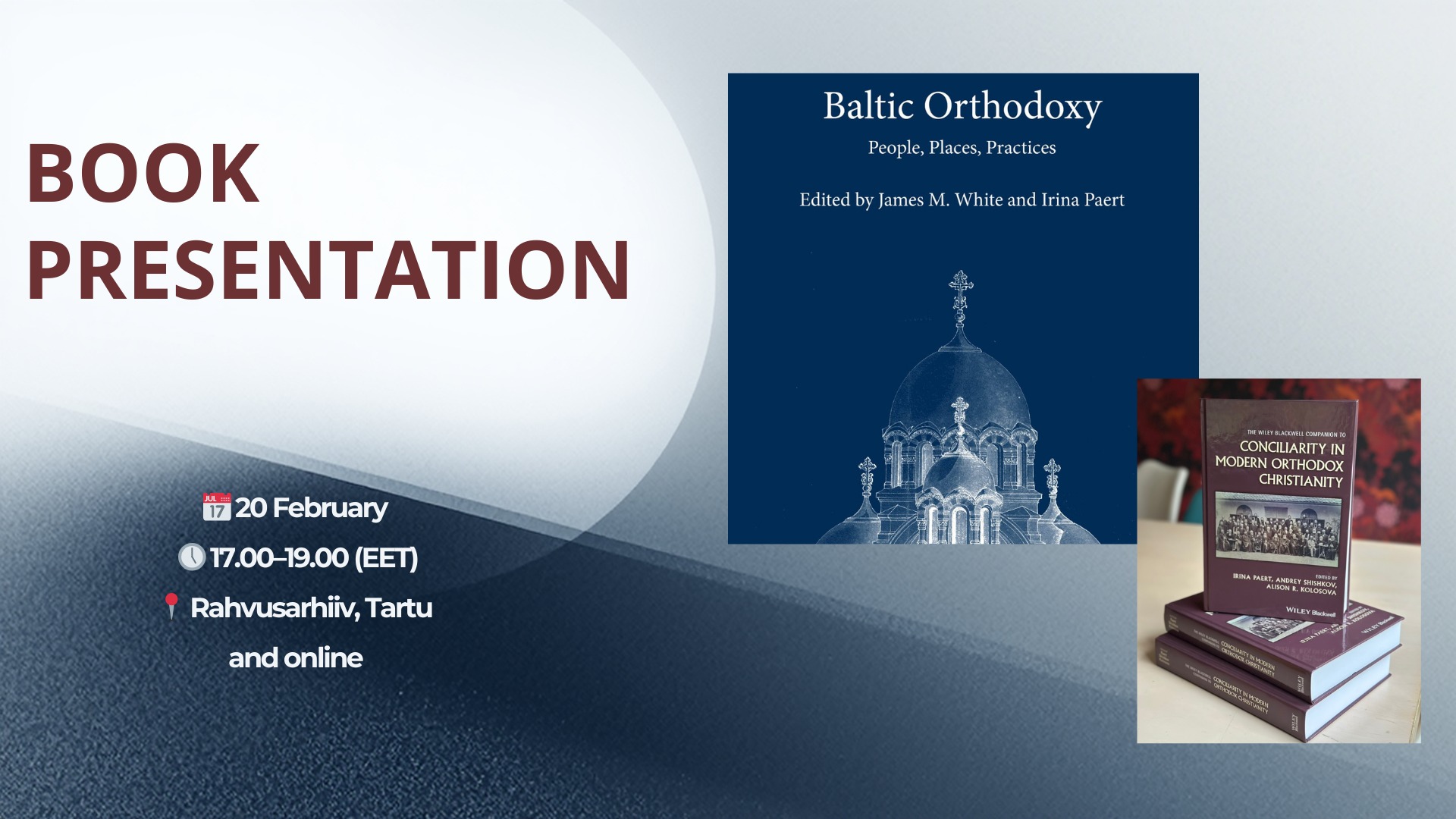 Uurimisprojekt „Õigeusk kui solidaarsus: rahvaliku ja kontsiliaarse õigeusu uurimus Balti kubermangudes ja iseseisvas Eestis 1890.–1930. aastatel“ kutsub kahe äsja ilmunud raamatu hübriidesitlusele, mis peegeldavad uurimisprojekti laiemat eesmärki: mõtestada õigeusku kui elatud, suhete kaudu kujunevat ja ajalooliselt dünaamilist nähtust, mida vormivad solidaarsus, osalus ja kohalikud kontekstid.