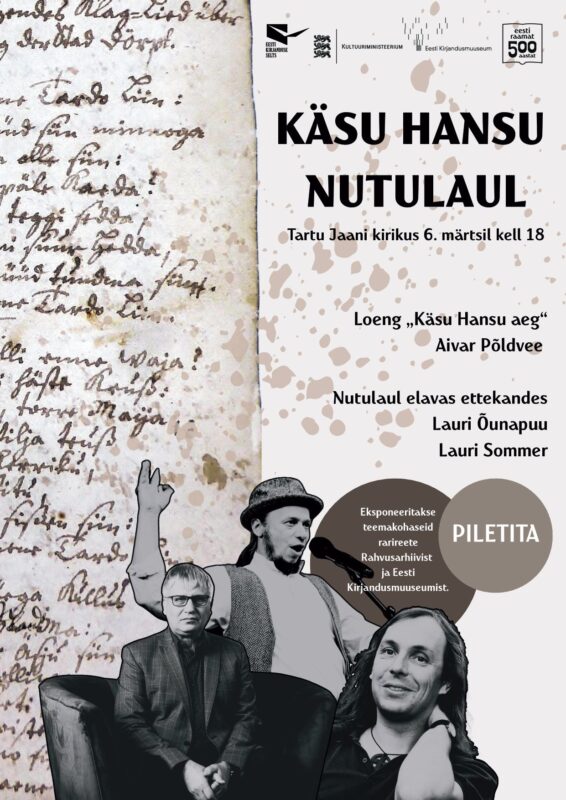 6. märtsil algusega kell 18 toimub Tartu Jaani kirikus loeng Puhja köstri Käsu Hansu 1708. aasta paiku lõunaeestikeeles loodud nutulaulust. Käsu Hansu itk on Tartu linnale, mis Põhjasõjas (1704-1708) kannatada sai. Laul algab sõnadega “Oh! ma Waene Tardo liin”.