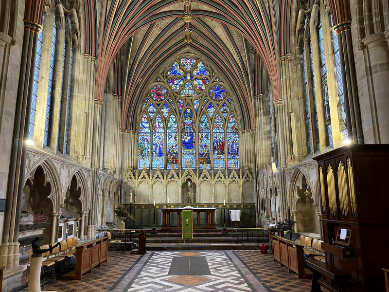Exeteri Maarja kabel idapoolse suure aknaga, mille keskmes on neitsi Maarja. Foto: Arho Tuhkru