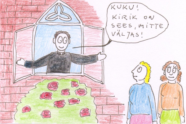 Tartus näen juba üle 15 aasta pühapäevast pühapäeva kirikus ühte ärimeest, kes seni peale «tere» ja veel paari sõna rohkem eesti keelt ei oska. Aga ta on kohal. Ta on seal, kus on ta usukaaslased.