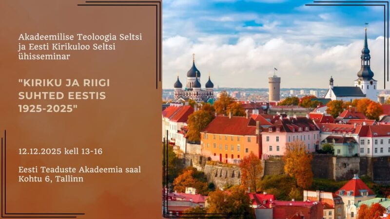 Akadeemiline Teoloogia Selts ja Eesti Kirikuloo Selts korraldavad ühisseminari „Kiriku ja riigi suhted Eestis 1925–2025: väärtused, järjepidevus ja muutused” reedel, 12. detsembril kell 13–16.15 Eesti Teaduste Akadeemia saalis (Tallinn, Kohtu 6).