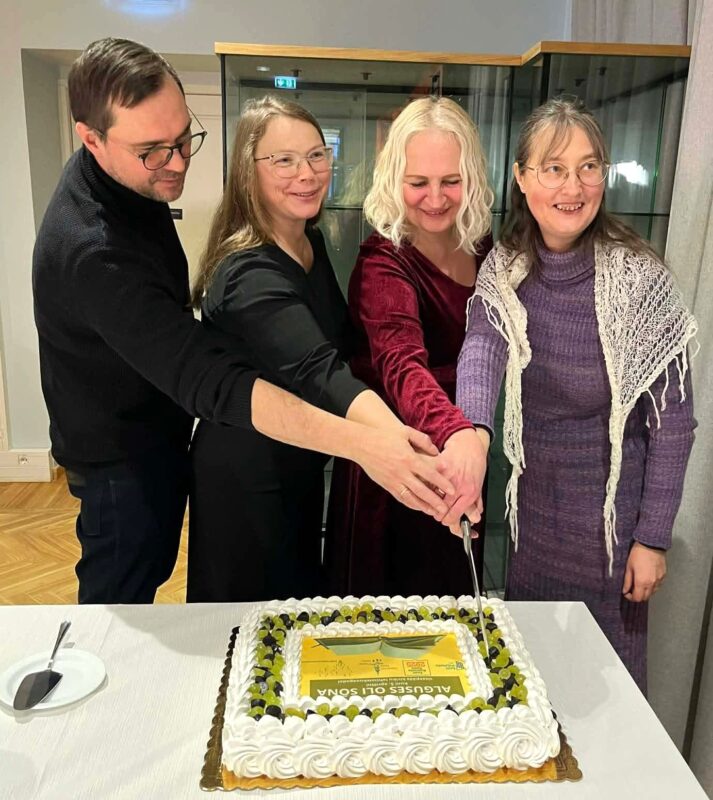 Pidutorti kutsuti lahti lõikama tiitli pälvinud Tartu Maarja koguduse esindus: (vasakult) Indrek Pekko, Elo Kikas, Helika Gustavson-Rätsep ja Lea Hallik. Foto: Alar Madisson