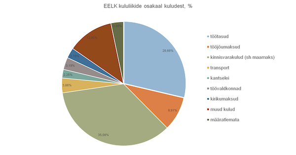 Mõtlema panev on fakt, et kinnisvarale kulutati 2,52 korda rohkem (2 673 166 eurot), kui sellest tulu saadi. Kulud kinnisvarale (sealhulgas maamaks) moodustavadki kõige suurema kuluartikli ehk 35,08%. Riigi tugi selles pühakodade programmi kaudu oli 396 791 eurot. „Koguduste panus kinnisvarasse, millest enamik on muinsuskaitsealused kirikuhooned, on väga suur. Sellest peaks rohkem rääkima,“ juhtis tähelepanu kantsler Keel.
