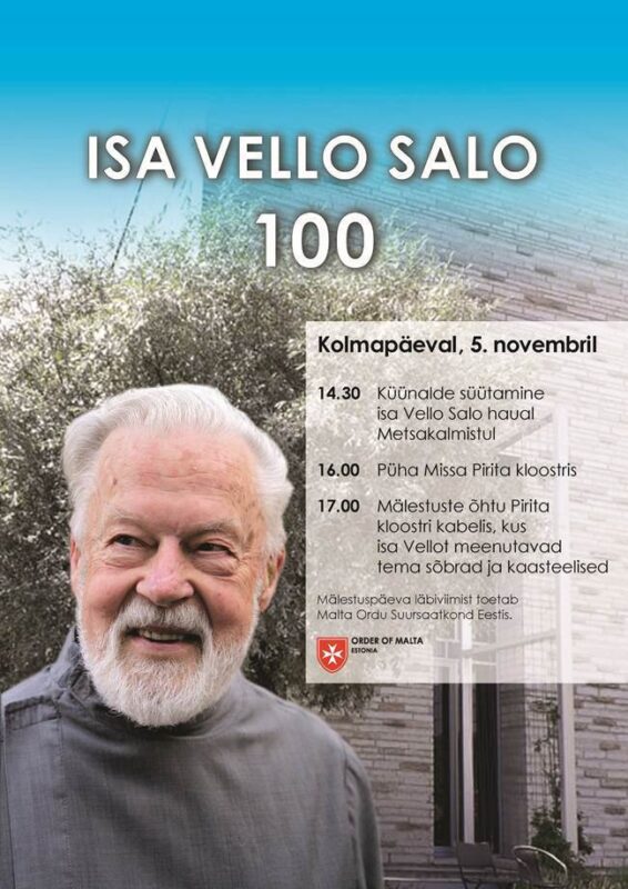 Isa Vello Salo mälestuspäev algab 5. novembril kell 14.30 hingepalve ja küünalde süütamisega isa Vello Salo haual Metsakalmistul.