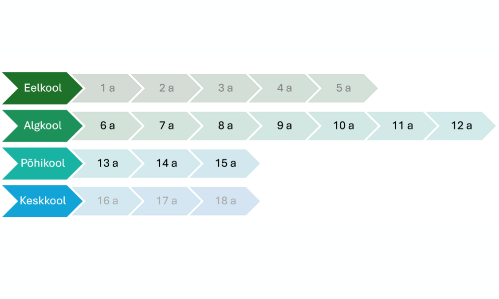 Haridussüsteem Rootsis Eurydice andmetel. Mustas kirjas kohustuslik kooliiga