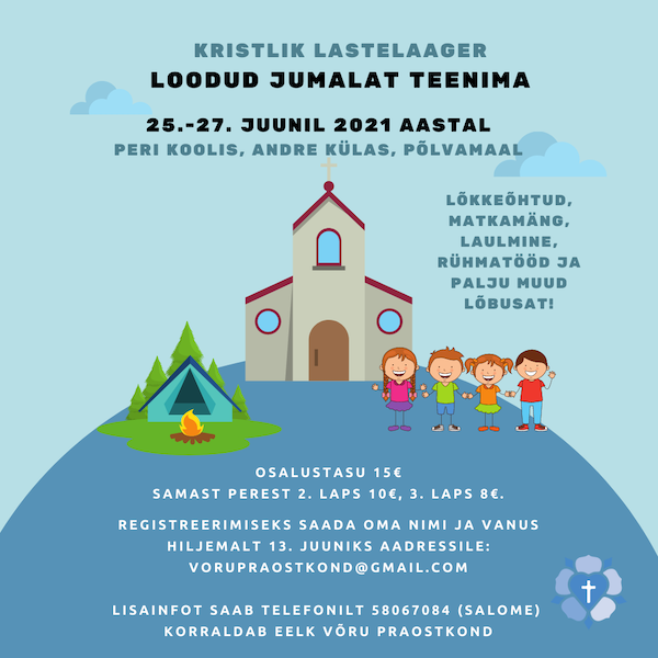 Võru praostkonna lastelaager „Loodud Jumalat teenima“ peetakse 25.-27. juunini Põlvamaal Peri koolis Andre külas.