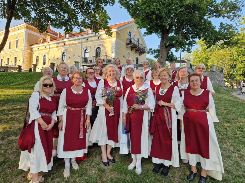 Tallinna Toompea Kaarli koguduse naiskoor möödunud aastal Viljandis, kus EELK kirikupäeva raames toimus vaimulik laulupidu. Esireas, lilled käes, dirigendid Marika Kahar (paremal) ja Kersti Petermann. Foto: Kaarli koguduse erakogu