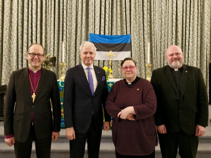 Eesti Vabariigi 107. aastapäeva tähistamiseks kogunesid Londoni eestlased kesklinnas asuva püha Anna kiriku kogudusesaali. Pidulikust koosviibimisest võtsid osa ka Eesti Vabariigi suursaadik Ühendkuningriigis Viljar Lubi ja piiskop Ove Sander Eestist.