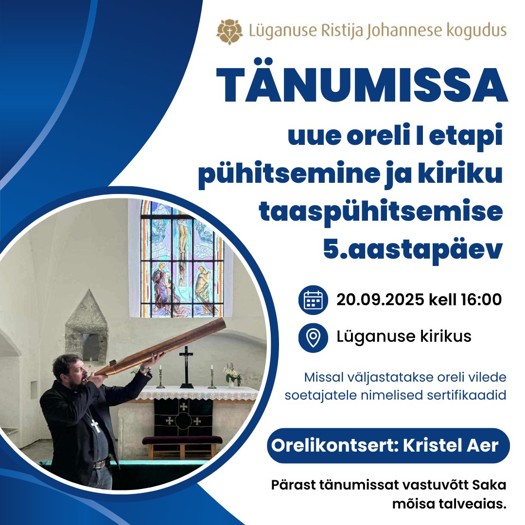 Lüganuse kiriku uue oreli I etapp pühitsetakse