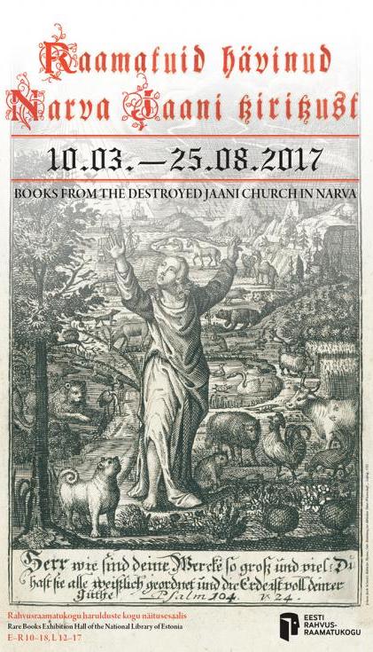 Rahvusraamatukogu harulduste kogu näitusesaalis on näitus „Raamatuid hävinud Narva Jaani kirikust“.