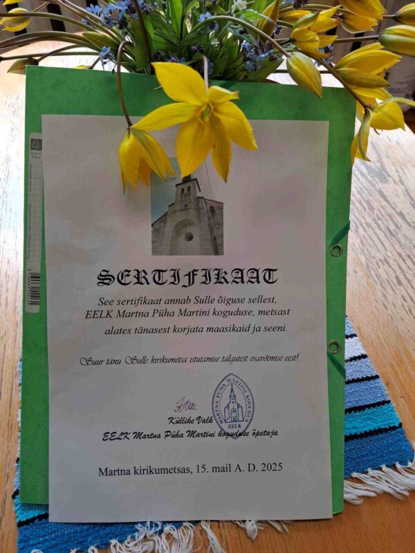 Igale metsaistutajale, suurele ja väikesele, väljastas kogudus sertifikaadi, mis lubab selle omanikul alates 15. maist tulla kirikumetsa marjule või seenele. Lapsed olid päevaga rahul! Kogudus on tänulik Martna kooli perele ja metsaühistule abi eest.