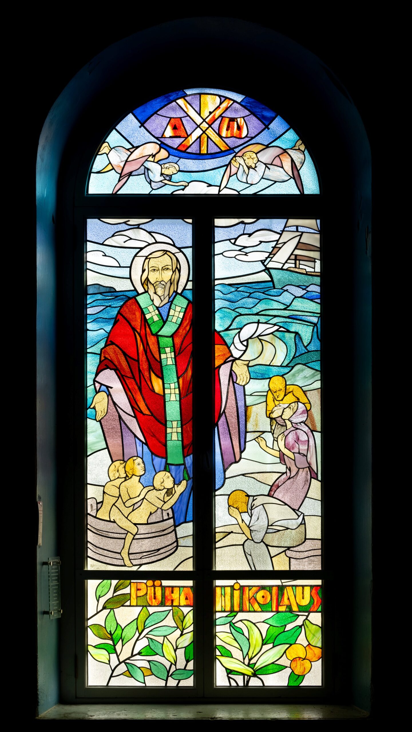 Vanameister Dolores Hoffmann asetas püha Nikolause ümber osa sellest, mida Nikolause kaitse alla on juba sajandeid mõeldud. Püha Nikolaus on üks kõige hinnatumaid ja armastatumaid pühakuid kogu maailmas. Tema kõikehaarav, soojendav ja halastav süda oli valmis abistama igat hädas olijat. Ta on orbudele isa, vaestele armuline abistaja, hädas olijatele kaitsja ja abistaja, murelikele Lohutaja. Selles mereäärses kirikus pole vähetähtis seegi, et Nikolaus on ka meremeeste kaitsepühak.