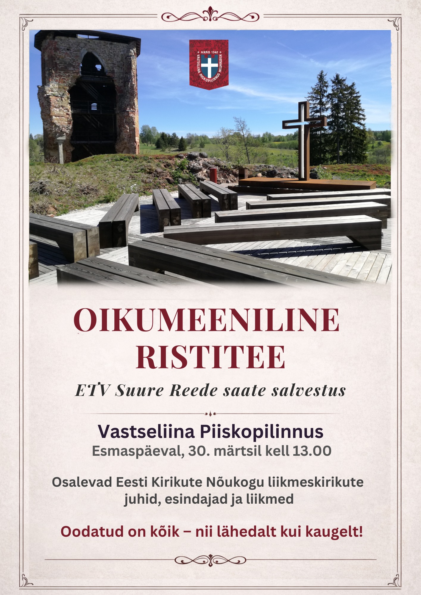 Esmaspäeval, 30. märtsil kell 13.00 (eeldatavasti) toimub Võrumaal Vastseliina piiskopilinnuse välikabelis selle aasta suure reede saate eelsalvestus – oikumeeniline ristitee, Kristuse Kolgata tee sümboolne läbimine.