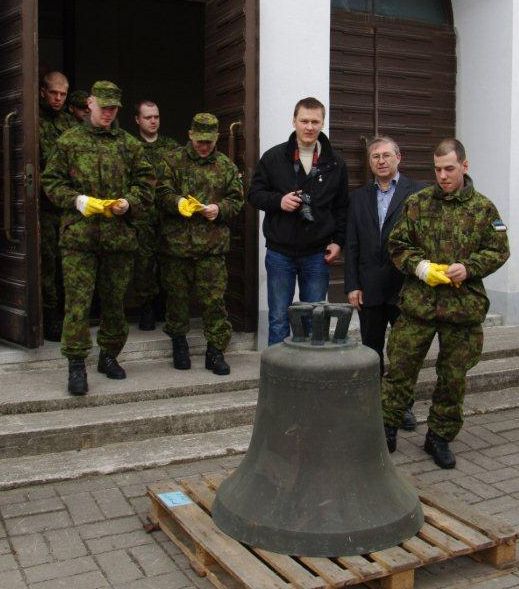 400 kilo kaalunud kella aitasid Eestis asunud hoidlast kiriku juurde transportida staabi- ja sidepataljoni sõdurid.