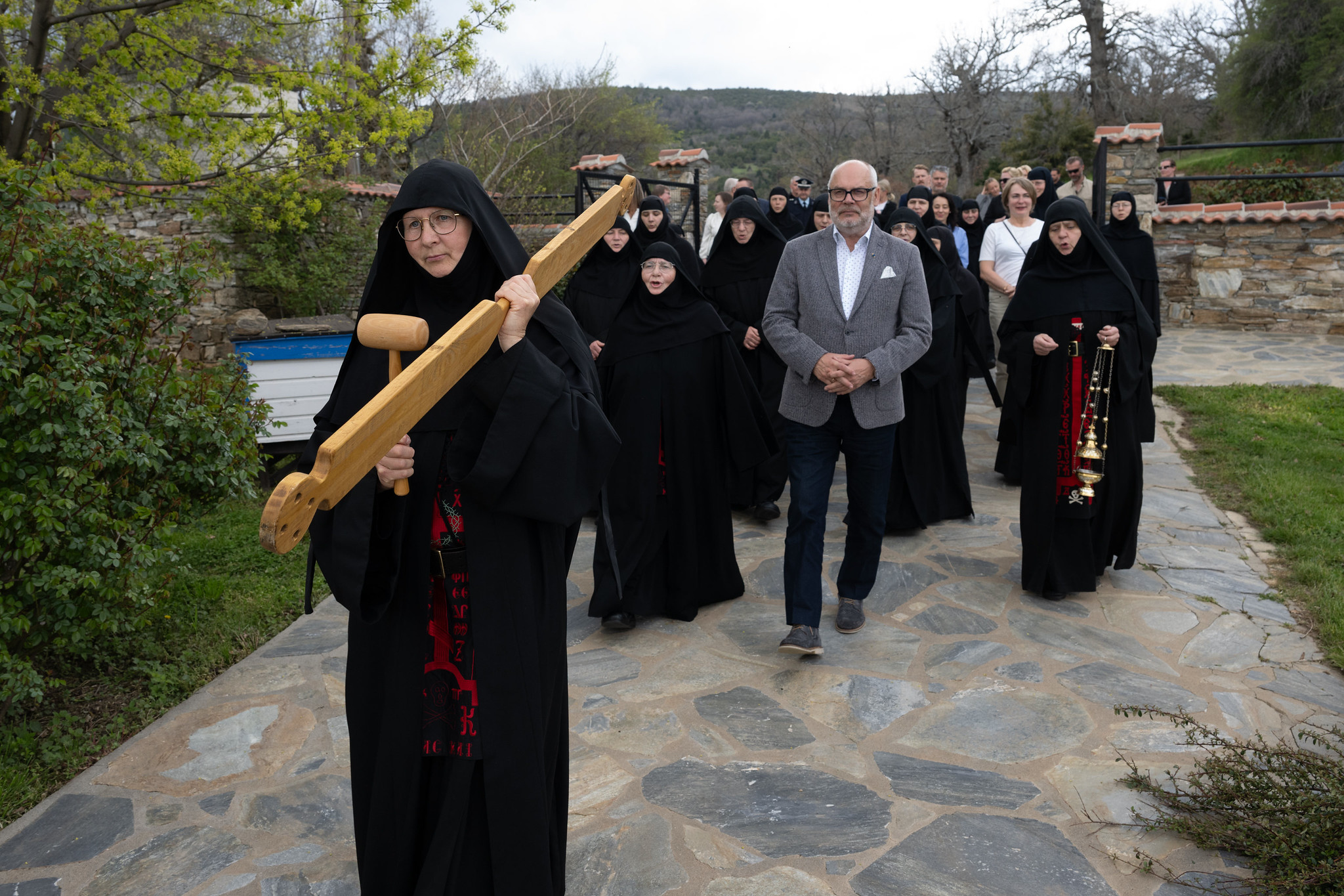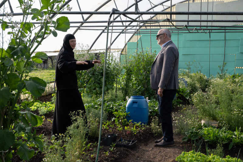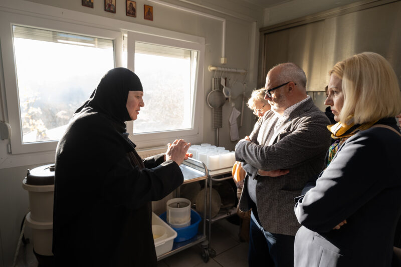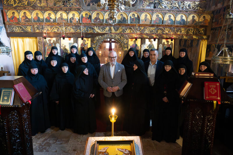 President külastas ka Agias asuvat Püha Ristija Johannese Eelkäija nunnakloostrit, kus elavad ja teenivad mitmed varem Saaremaal Reomäel teeninud nunnad. Kloostris tegutseb kaks eestlast ning eesti keelt räägib koguni 15 nunna maailma eri paikadest. Tegemist on väikese, kuid tähendusrikka ja külalislahke kogukonnaga Kreeka südames.