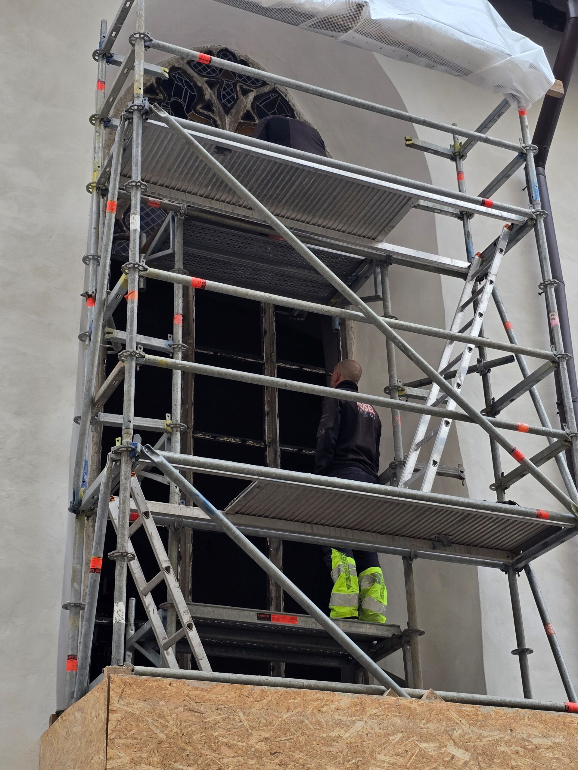 Septembri lõpuks loodetakse korda saada Tallinna Püha Vaimu kiriku põhjafassaadi neli suurt vitraažidega akent.