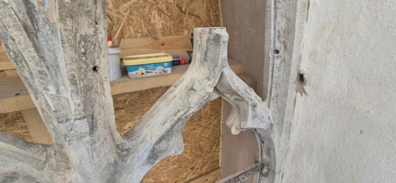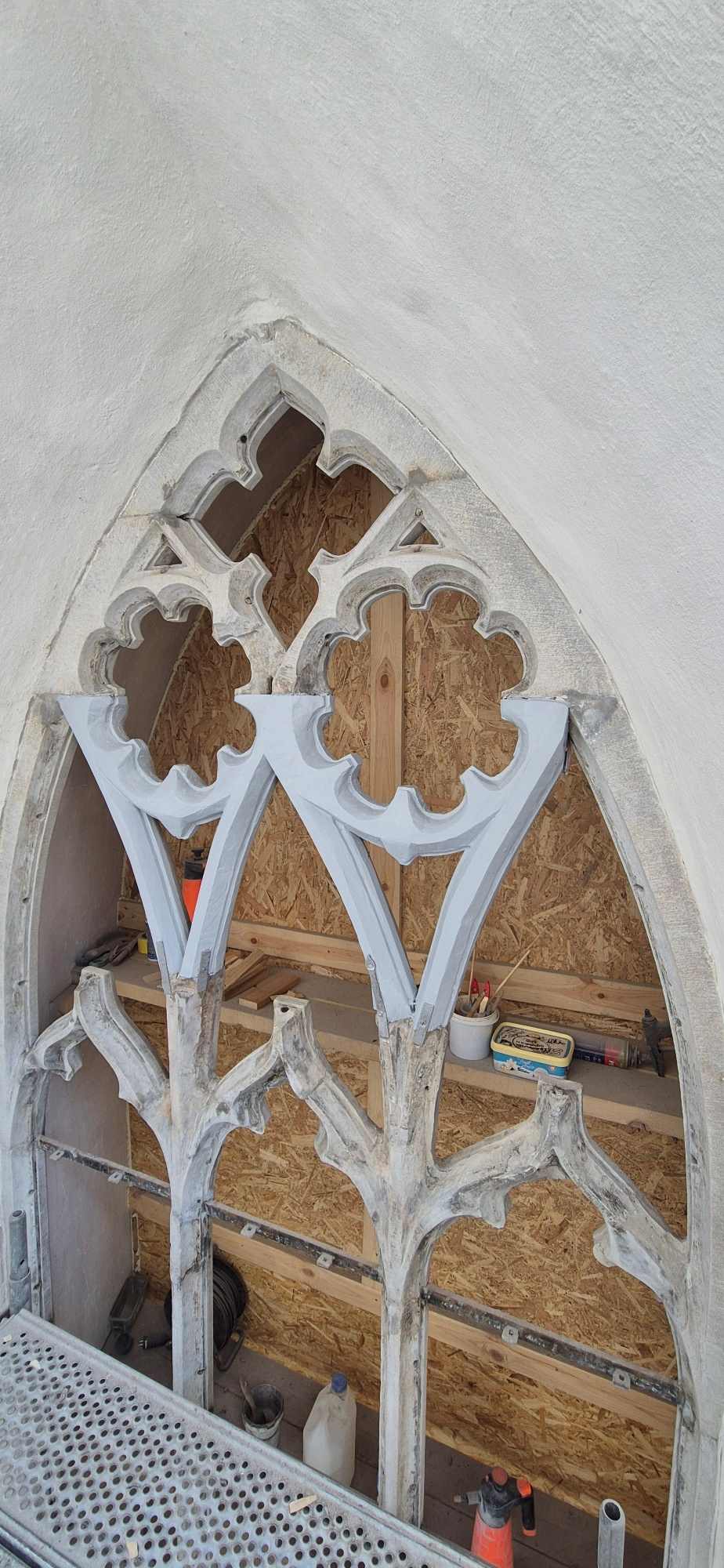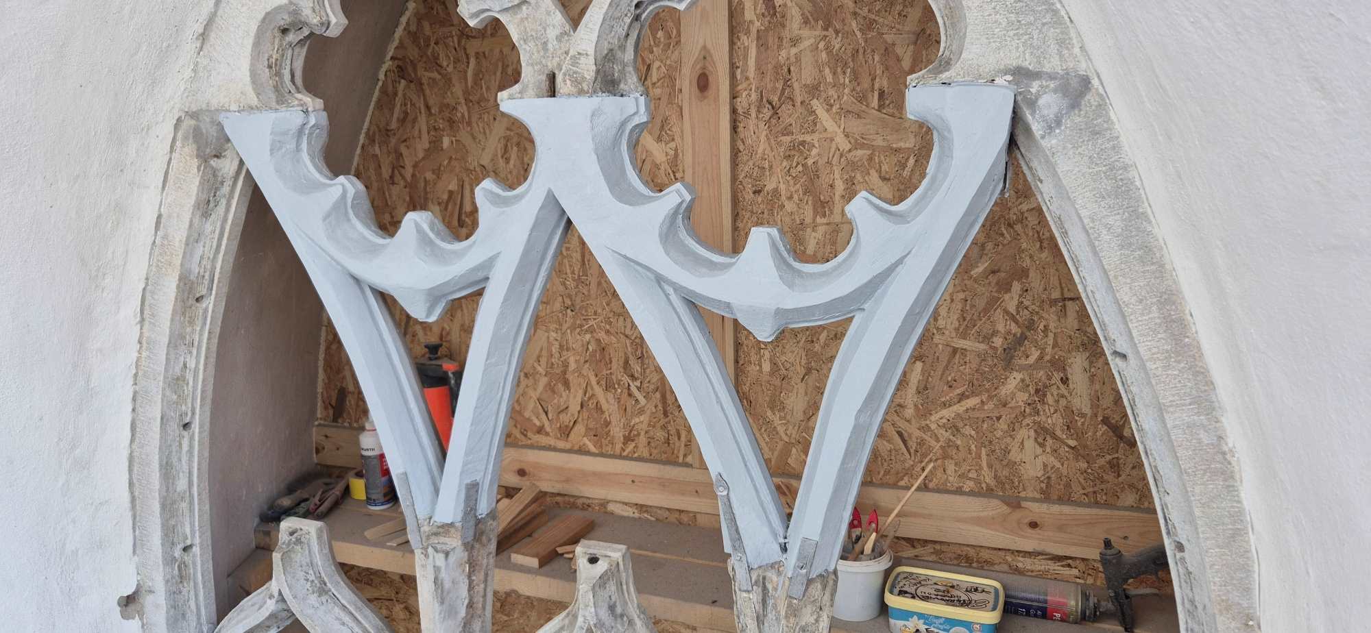 Põnevust lisab asjaolu, et kiriku peauksest vasakult teine aken on osaliselt puitdetailidega. Kui algne tegevuskava nägi ette nende osade vahetuse raidkiviornamentide vastu, siis nüüd on muinsuskaitse  võtnud nõuks need säilitada järeltulevatele põlvedele. Mis kujul nad säilitatakse, kas eraldusvärviga uuendused markeerides või toonitakse nad kivi värvi, seda näitab lähiaeg.
