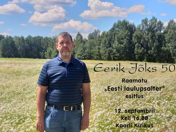 12. septembril kell 16 esitleb muusikateadlane Eerik Jõks Tallinna Kaarli kirikus raamatut „Eesti laulupsalter“. See on ühtlasi tema 50. sünnipäeva tähistamine. Juubilari sooviks on, et sellest kujuneks emakeelse kirikulaulu pidu. Kaetud on kohvilaud.