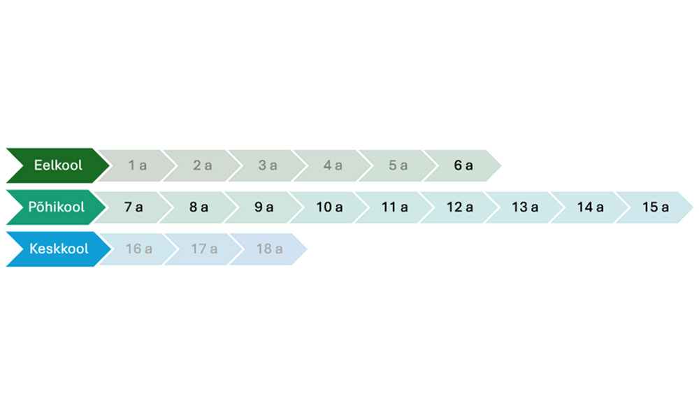 Haridussüsteem Rootsis Eurydice andmetel. Mustas kirjas kohustuslik kooliiga. Joonis: Olga Schihalejev