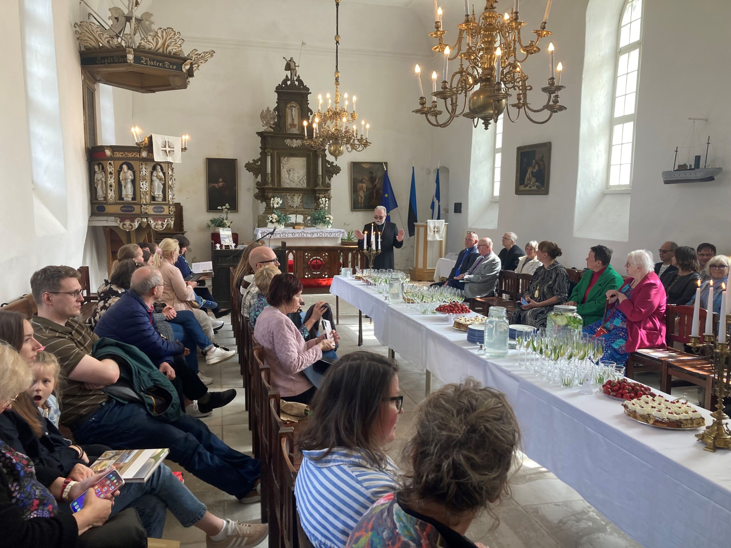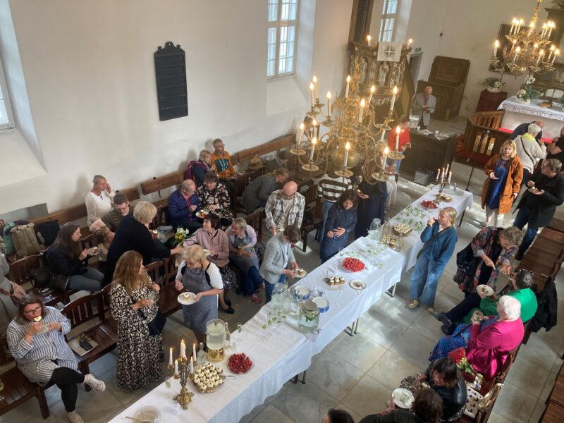 Kümne aastaga on siinse koguduse liikmed juba harjunud, et ajuti seatakse kirikupingid nii, et pikk pidulaud hõrkude roogadega pikihoonesse kenasti ära mahub.