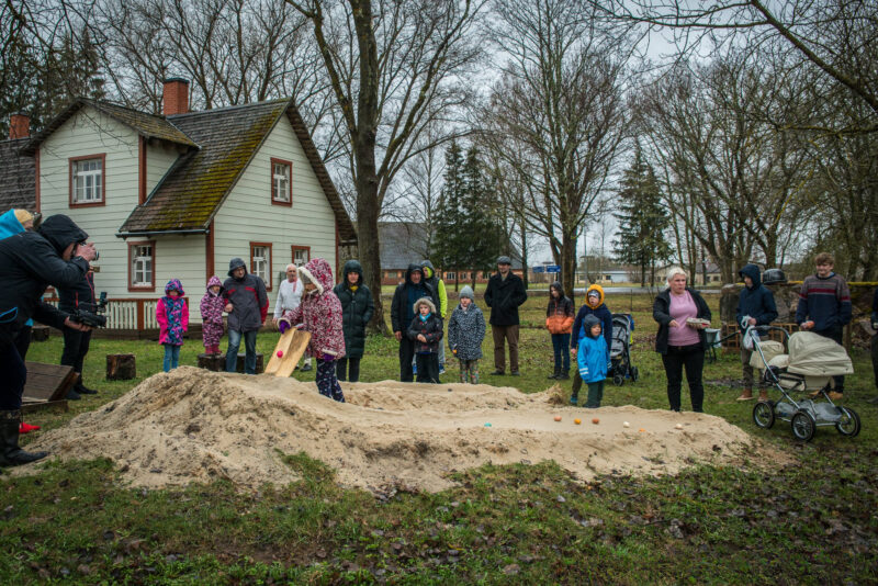 Munaloomka Setumaal Obinitsas – kõik saavad värvitud mune võidu veeretada selleks loodud kaldpinnal. Foto: Harri A. Sundell