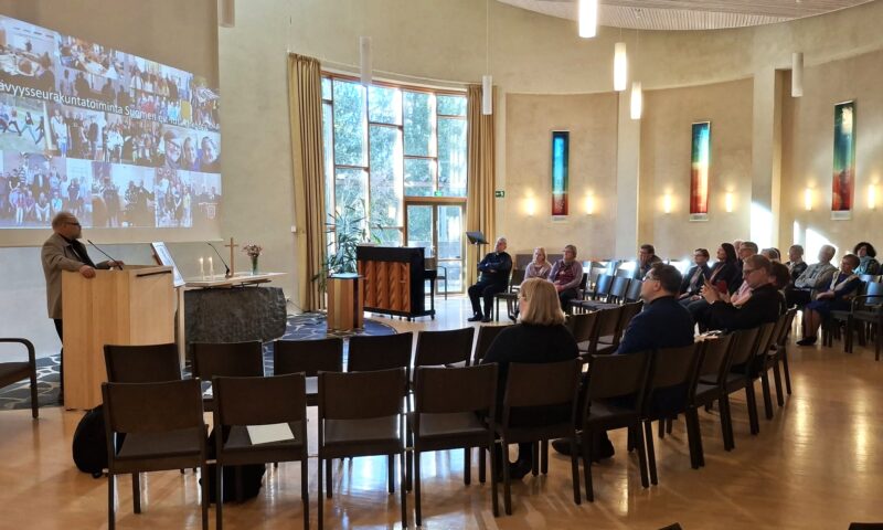 Sõpruskoguduste esindajate kohtumine Hvittorpi laagrikeskuses. Kõnepuldis Ari Ojell. Foto: Kaido Soom