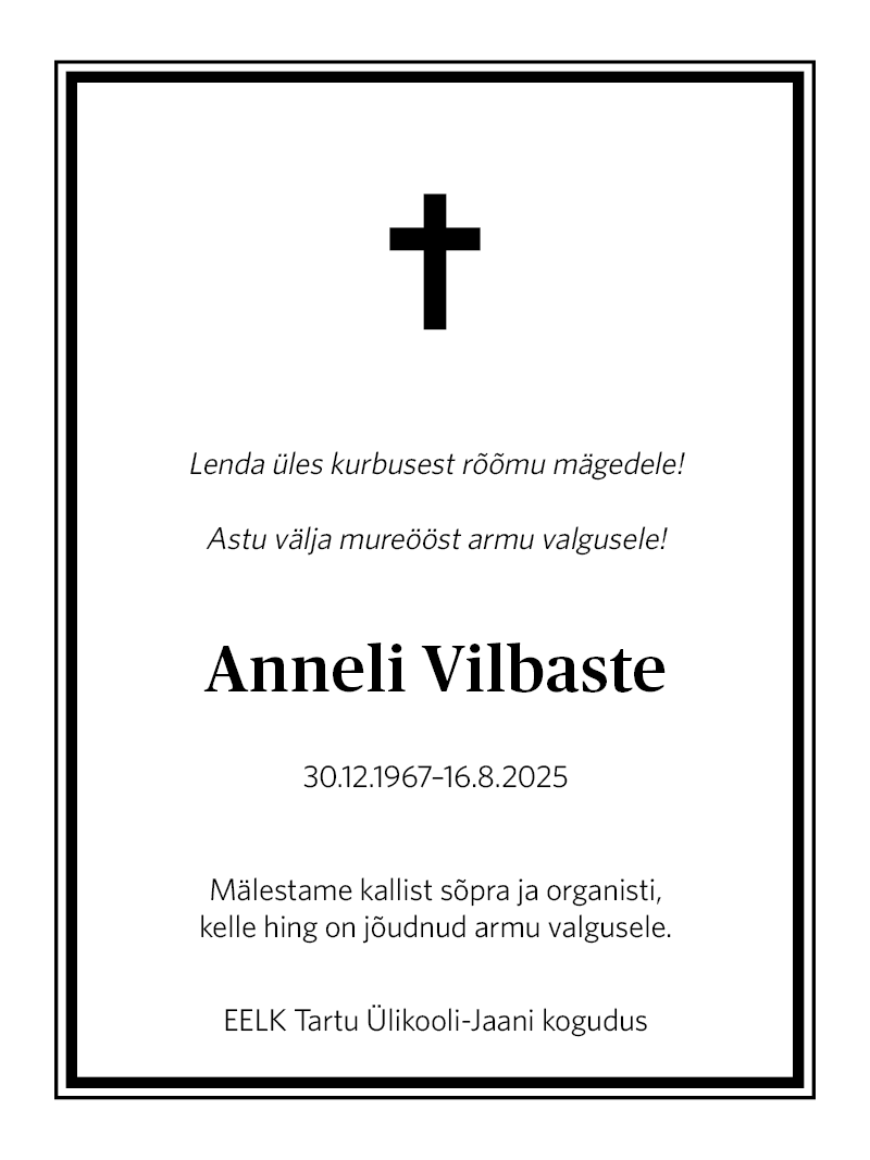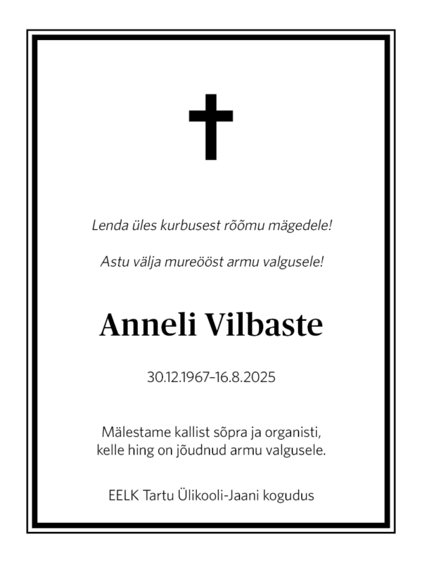 / Autor: Eesti Kirik / Rubriik: Surmateade, Teated / Number: 20. august 2025 Nr 29 /
