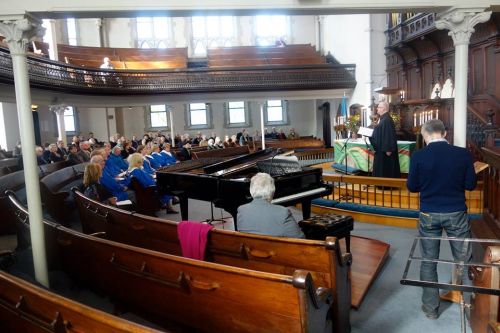 Kirikulisi oli 1500 inimest mahutavas pühakojas seekord alla saja. Lahkumisteenistusel laulis koguduse segakoor Heli Tenno juhatusel. Klaveril mängis Asta Ballstadt ning orelil Marta Kivik. Hüvastijätukõne aluseks oli õpetaja Kadakas valinud 2Kr 6:10: «Kui kurvad, aga ikka rõõmsad; kui vaesed, kes siiski paljusid rikkaks teevad; kui need, kellel ei ole midagi ja kelle päralt on kõik». Mälestuspalves meenutati igavikku kutsutud õpetajaid ja koguduse liikmeid.
