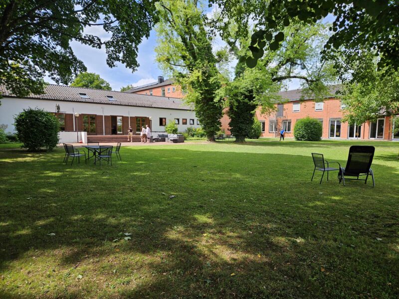 Pullachi koolituskeskuse õu, kus toimusid vabaõhuvestlused õpitu teemal ja kuhu avanes pääs otse auditooriumist. Foto: Urmas Karileet