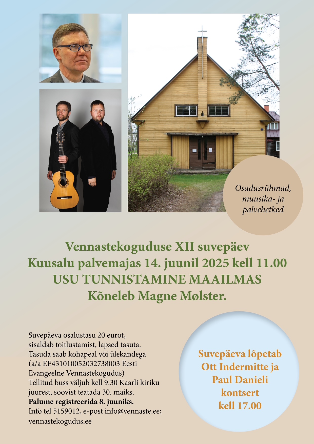 Laupäeval, 14. juunil algusega kell 11 toimub Kuusalu palvemajas vennastekoguduse üheksas suvepäev teemal „Usu tunnistamine maailmas“. Peakõneleja on misjonär ja koguduseõpetaja Magne Mølster. On osadusrühmad, muusika- ja palvehetked, toitlustamine. Päeva lõpus Ott Indermitte ja Paul Danieli kontsert.
